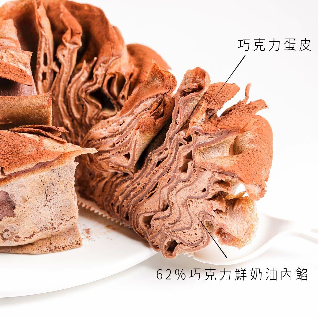 千層蛋糕首推巧克力口味,濃郁的巧克力香氣與微苦的口感,絕對一口接著一口。