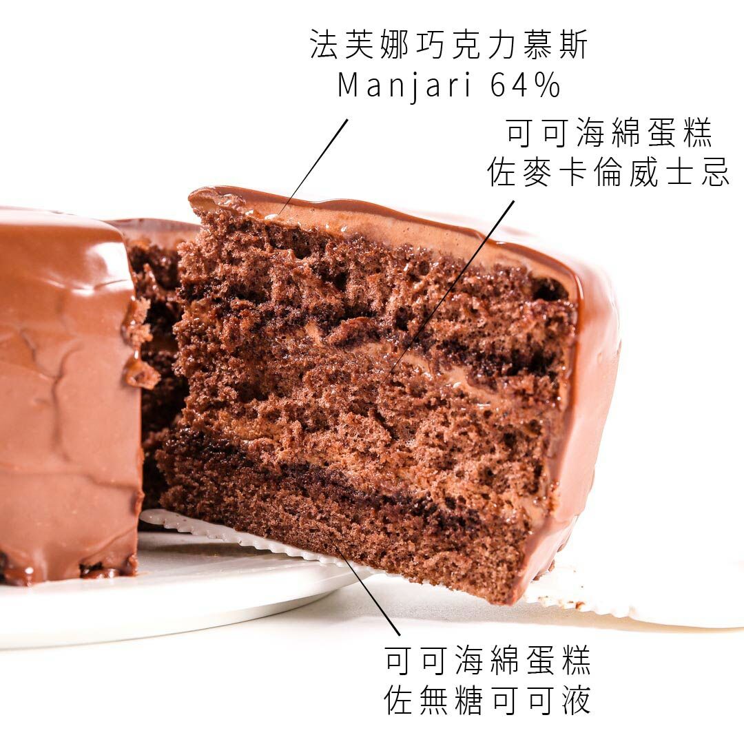 上下兩層的蛋糕淋上的是無糖可可液,可以抵銷巧克力慕斯的甜度;中間的蛋糕淋上麥卡倫威士忌,用量刻意控制在其他威士忌蛋糕的一半左右,讓不敢喝酒的朋友也可以開心享用雪莉桶所帶來的芬芳氣息。