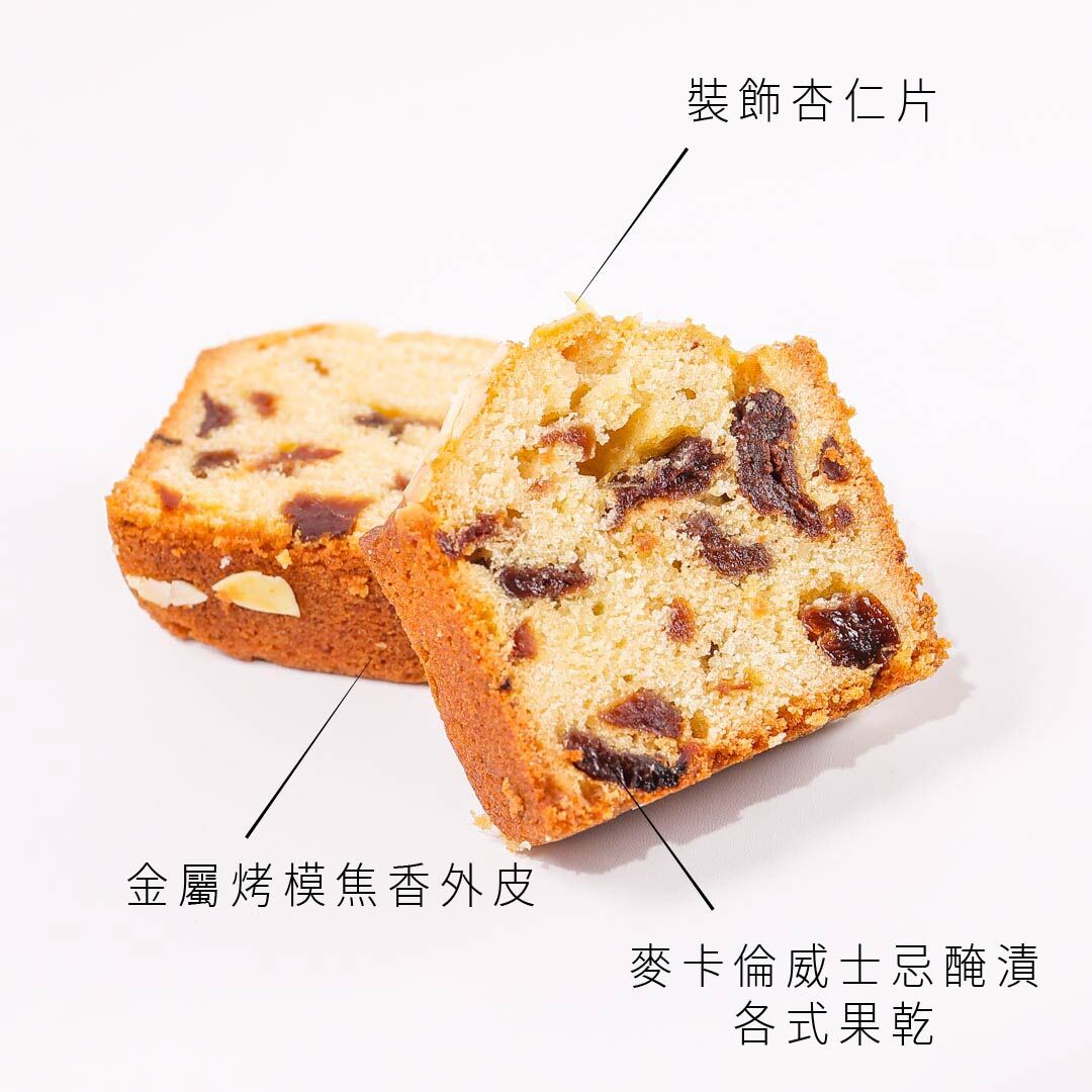 丹地蛋糕除了使用威士忌醃漬大量的果乾外,蛋糕體內還加入了大量的杏仁粉,因此讓他香氣爆棚,與一般的法式磅蛋糕完全不一樣。